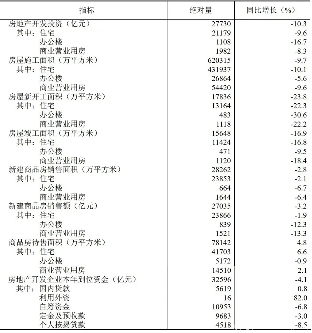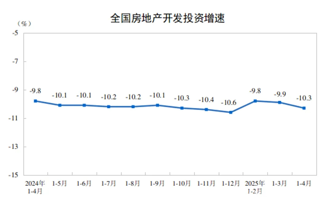 1-4月份,全国房地产开发投资27730亿元,同比下降10.3%(按可比口径计算,详见附注6);其中,住宅投资21179亿元,下降9.6%。