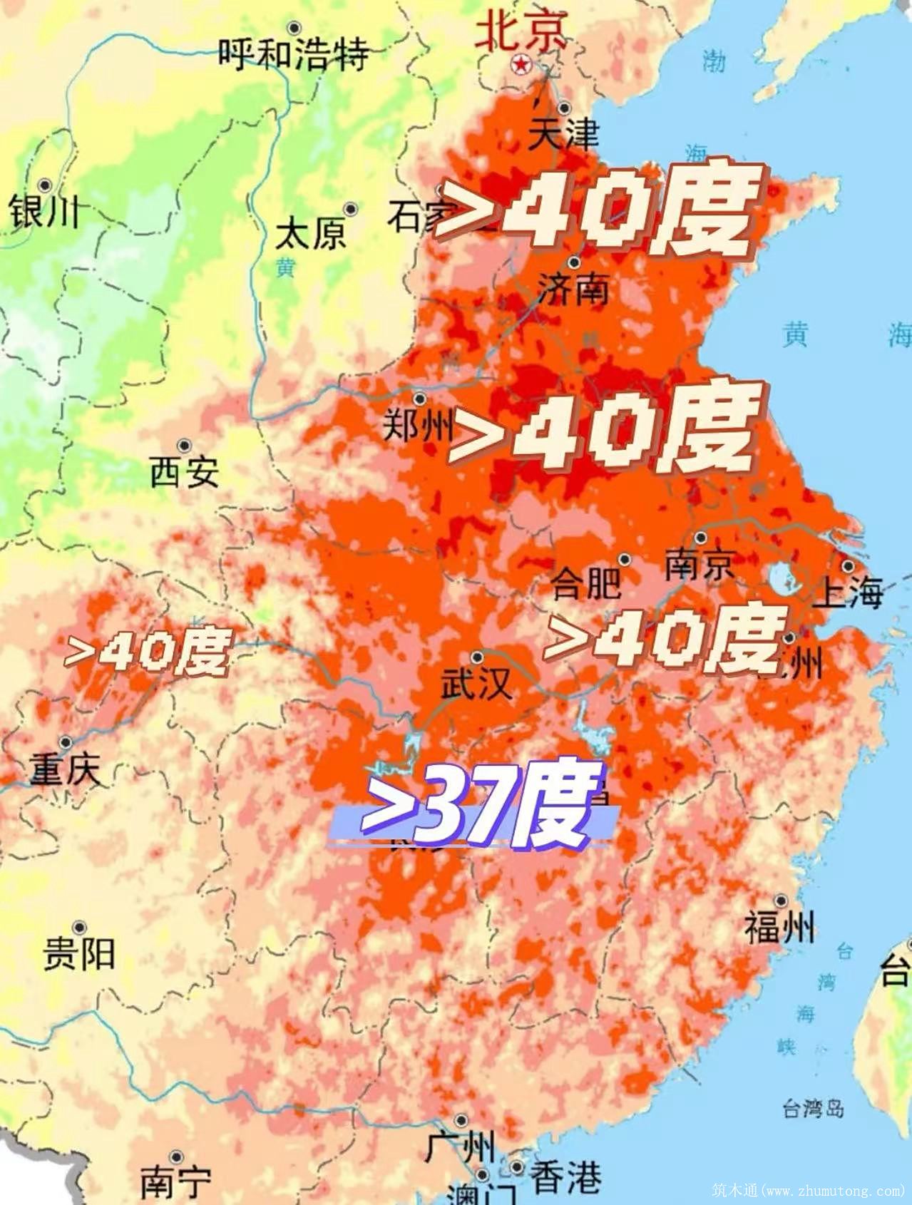 自7月1日起,高温从江浙沪向华中、华南、江淮流域和四川盆地扩展。 7月5日前后,江浙沪、广东、福建、湖南、江西、湖北、安徽、四川盆地,甚至关中平原、河南、山东和河北南部都出现大面积37度以上的高温天气(橙色区域),华东地区的不少地方甚至超过了40度(红色区域)。譬如说上海,7月6日预报的最高气温就达到了40度,如果实现,将打破1873年以来的最早40度记录。