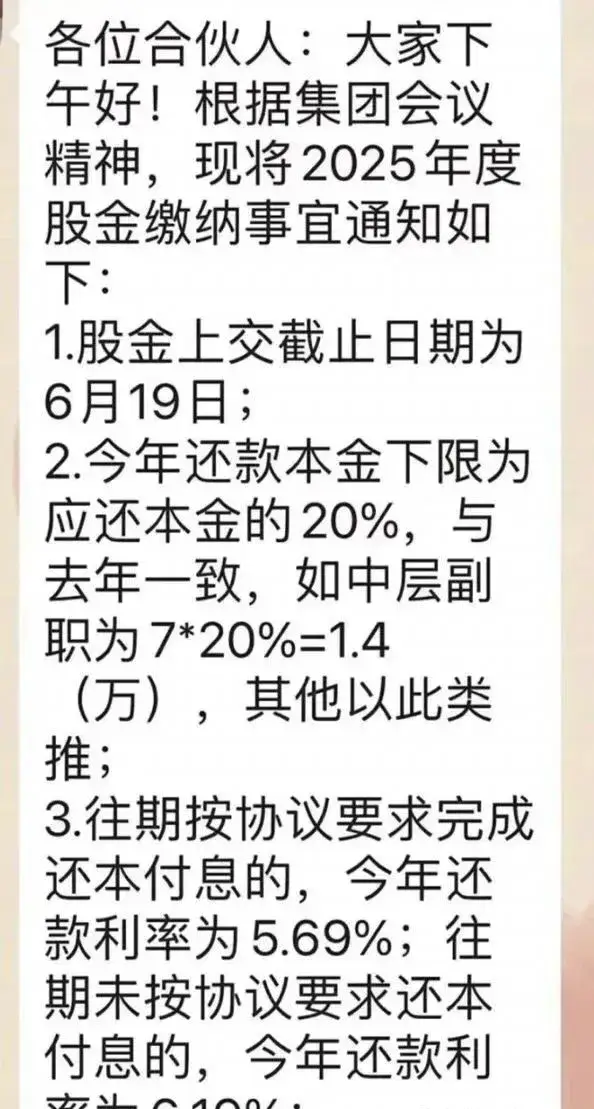 可这位新领导履新之后,既没有着手解决员工被拖欠薪资的问题,也没有处理员工退股相关事宜,反倒迫不及待地催促大家缴纳2025年的新股金!
