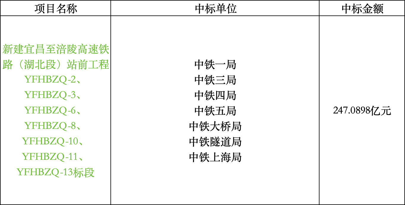 上述工程中标价合计约人民币667.7226亿元,约占中国中铁股份有限公司中国会计准则下2024年营业收入的5.77%。
