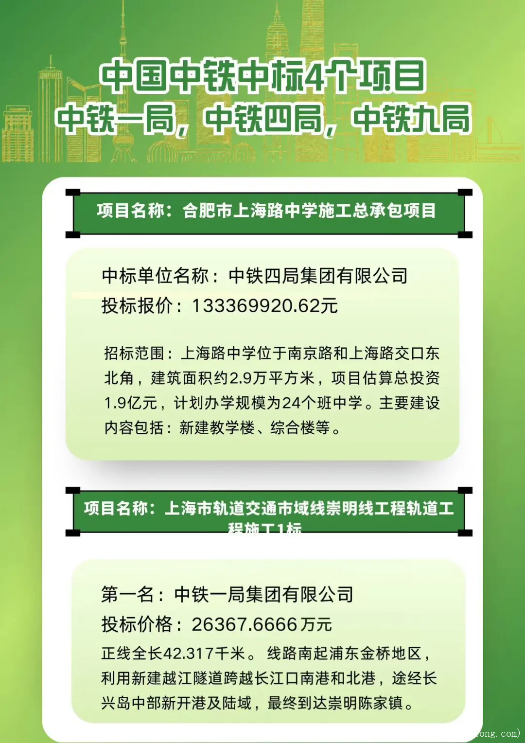 中铁集团拟中标多个大项目,合计超十亿!小编将详细中标信息整理成图表形式,便于各位同行们迅速查看。